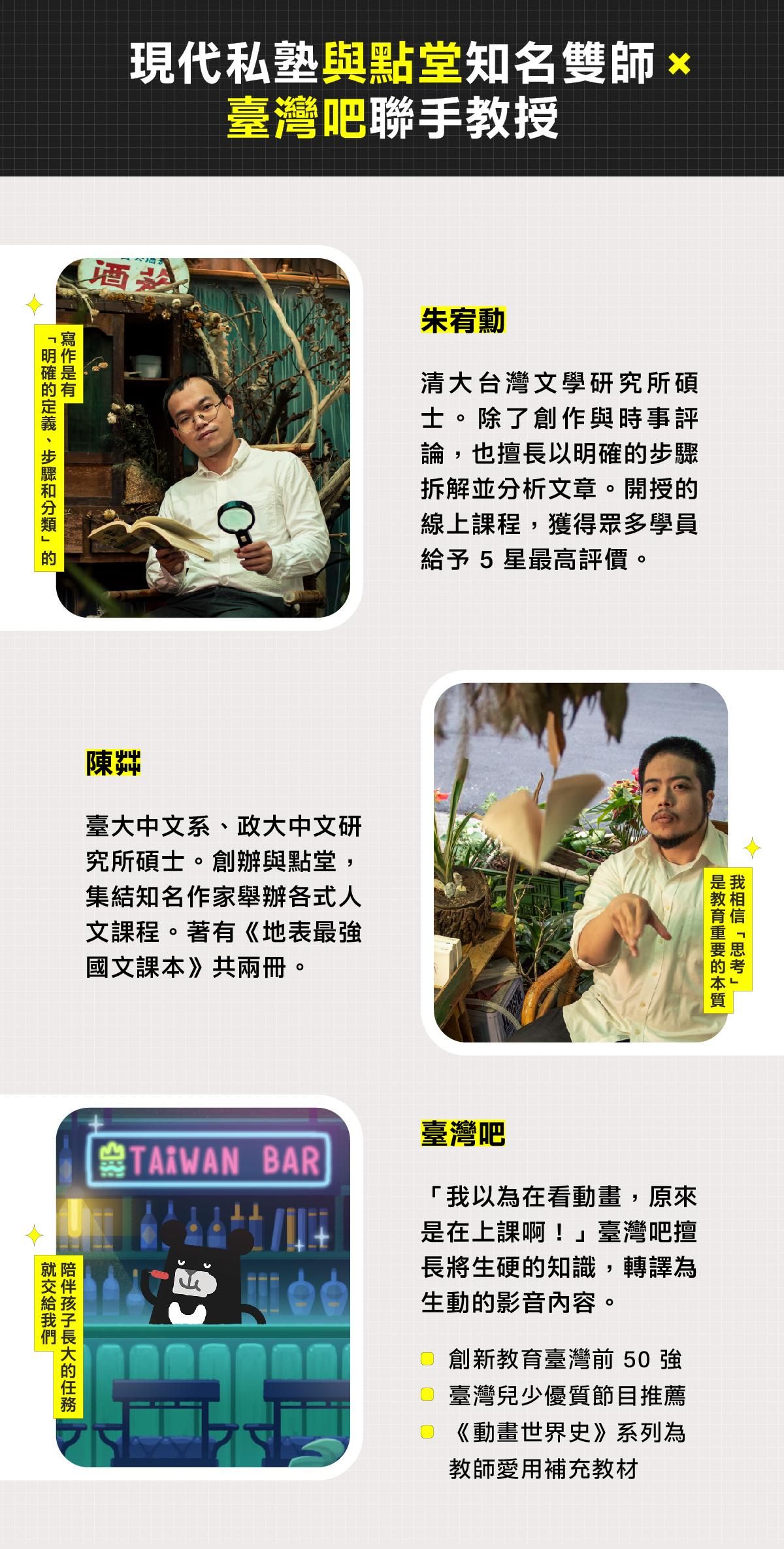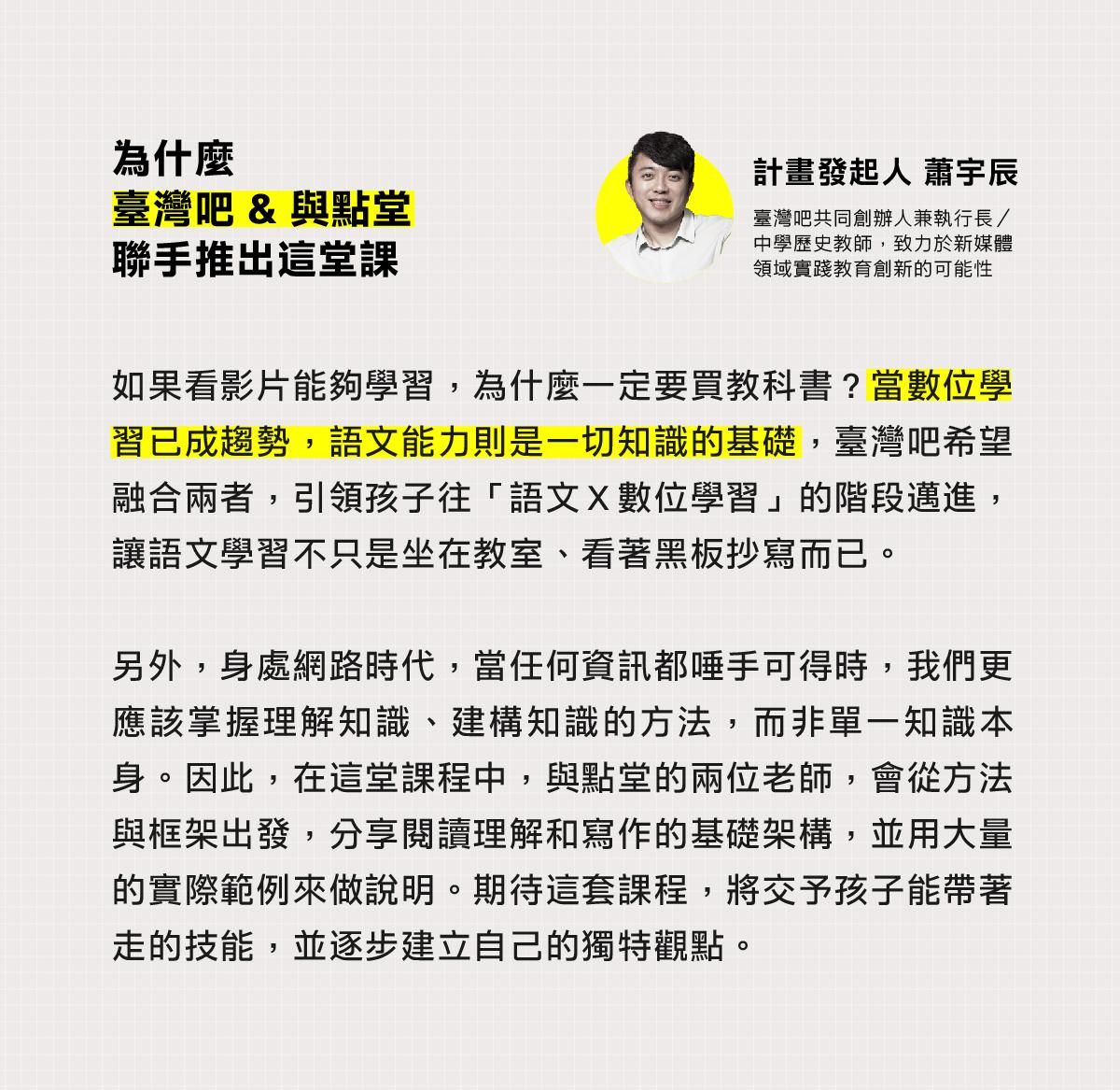 臺灣吧X朱宥勳X陳茻,三方協力打造的語文學習方法,為「閱讀」與「作文」打下穩固基礎。著重理解不死背,讓語文成為孩子考試時的最佳利器!