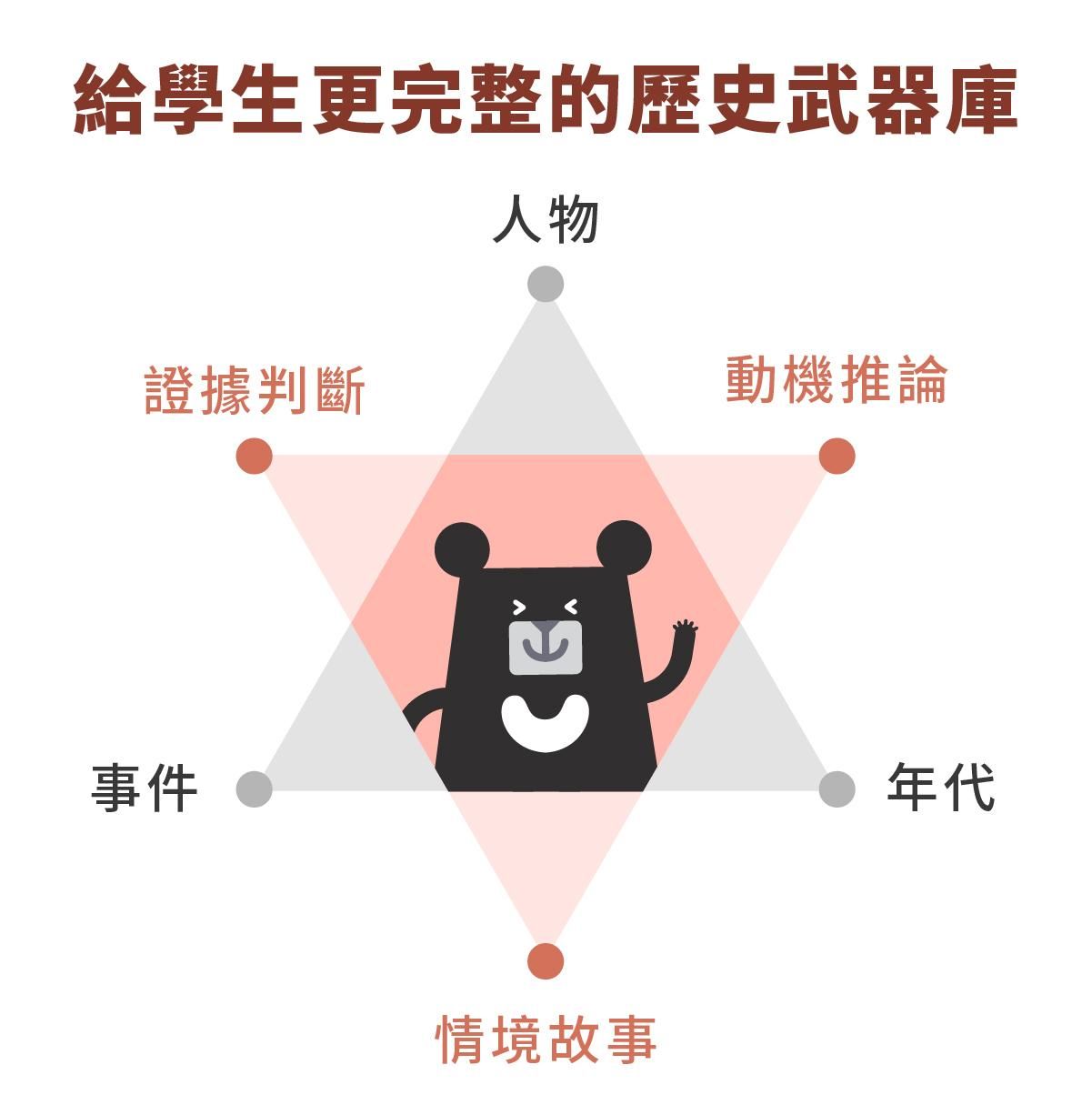 在這堂課程裡,我們更重視「證據判斷」能力、帶領孩子「推論動機」,再搭配「情境故事」,所有的人物和事件,都將變得更加具體。