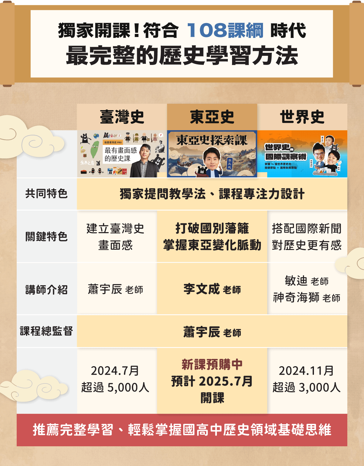 臺灣史、東亞史、世界史,最完整的歷史學習需求,大抓周學院都準備好了!