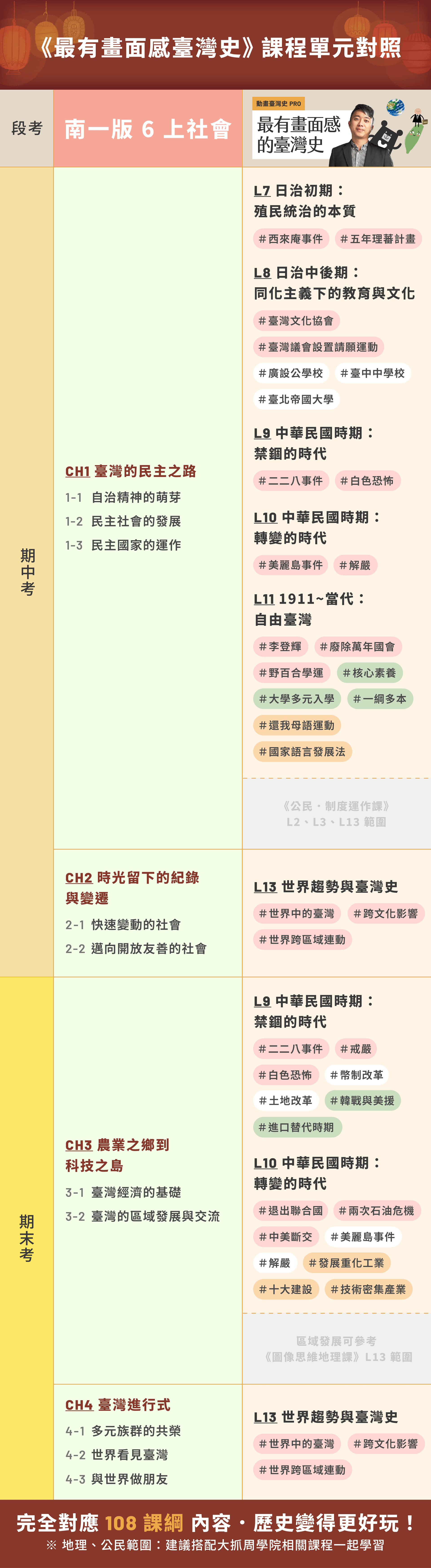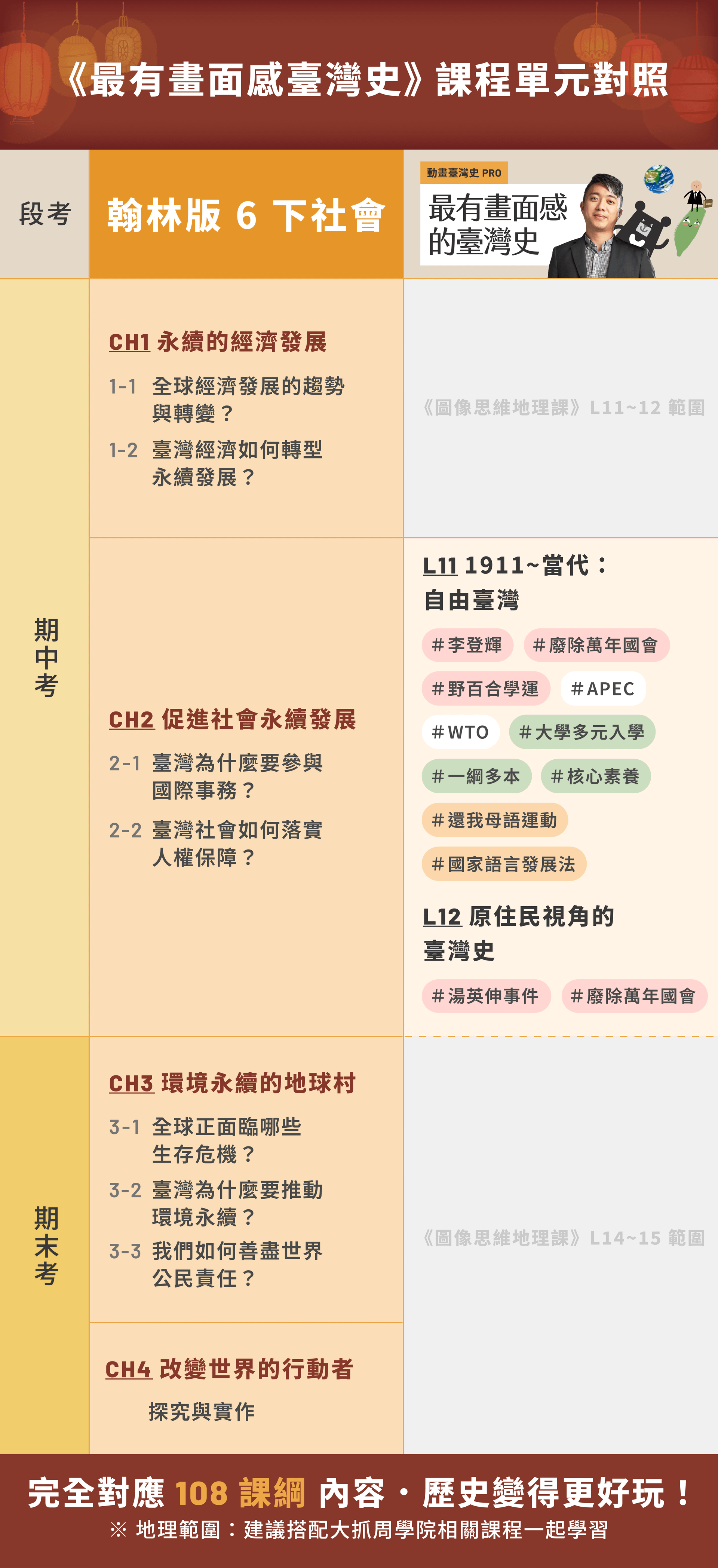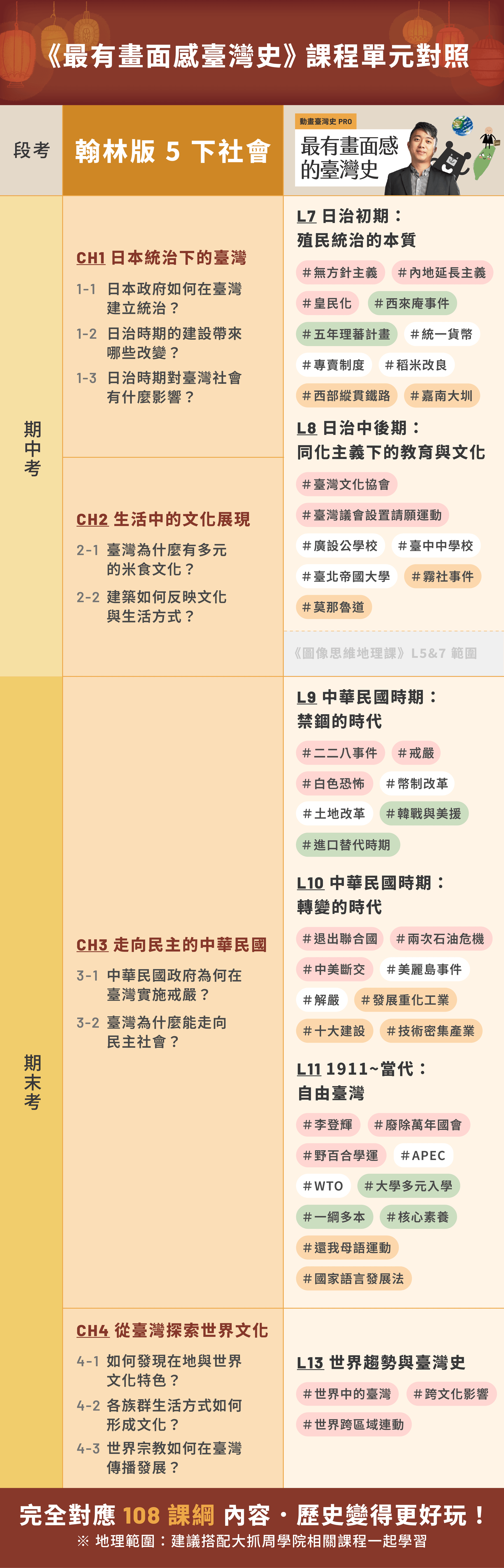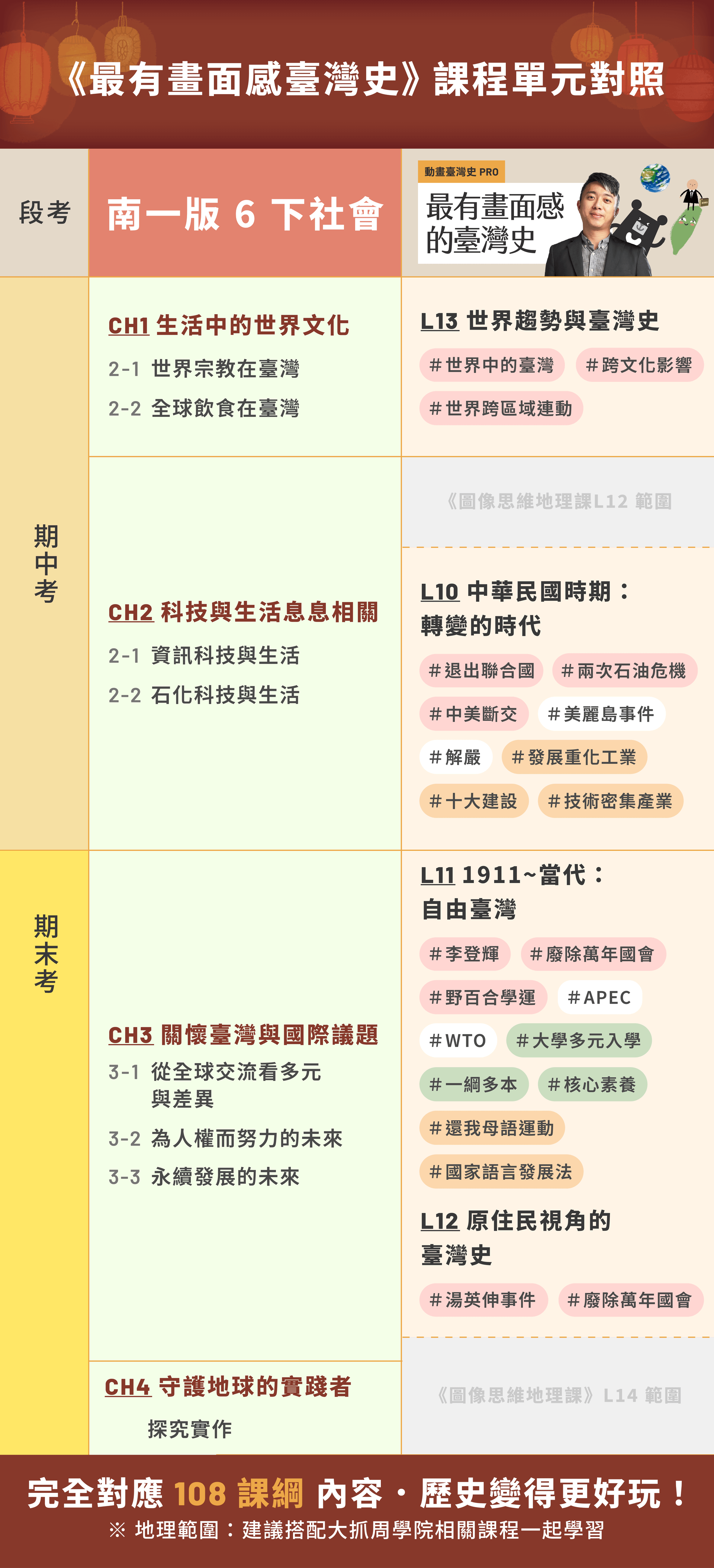 課程包含價值 $900(每年)的《動畫臺灣史》全系列影片