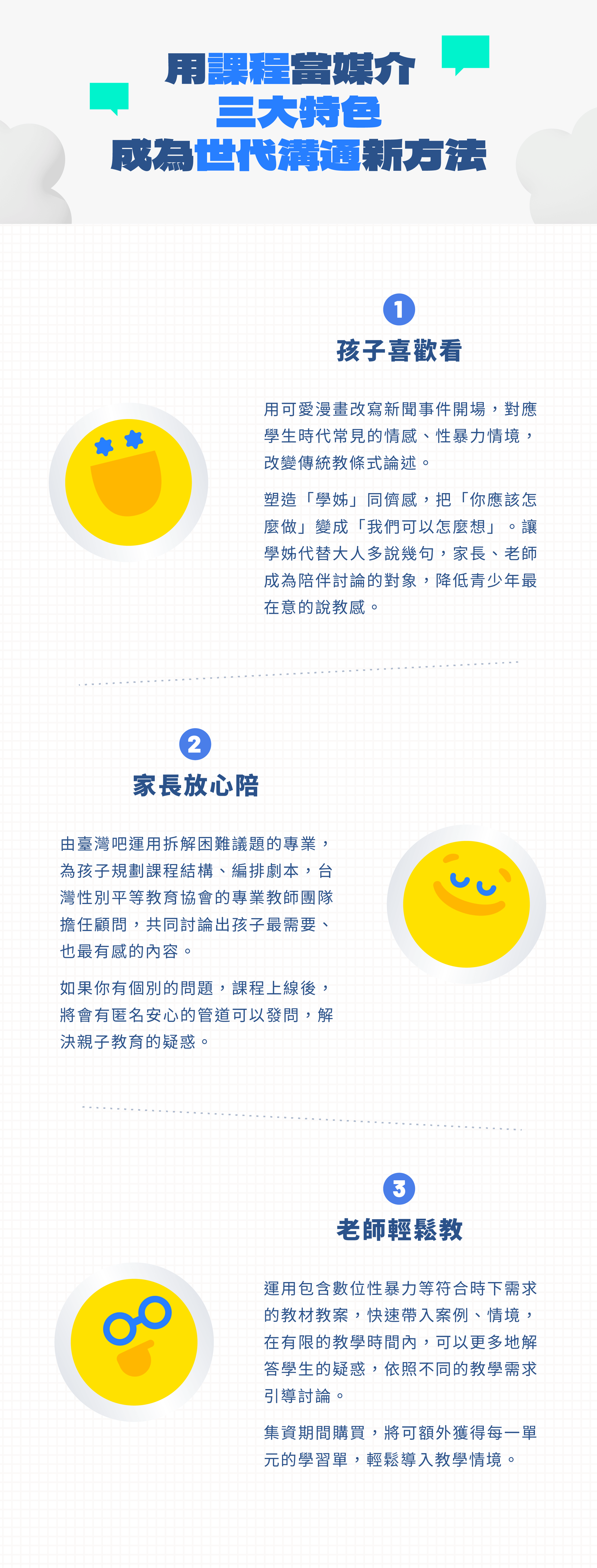 這是一堂為青春期的孩子整理關於:身體界線、情感意識、自我保護知識的課程。接住情竇初開的好奇心,更突破開口談性教育的害羞尷尬,才能學習正確的處理、求助方式!