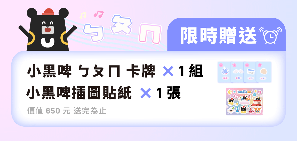 現在下單再送 小黑啤 ㄅㄆㄇ 卡牌、插圖貼紙(價值 650 元)