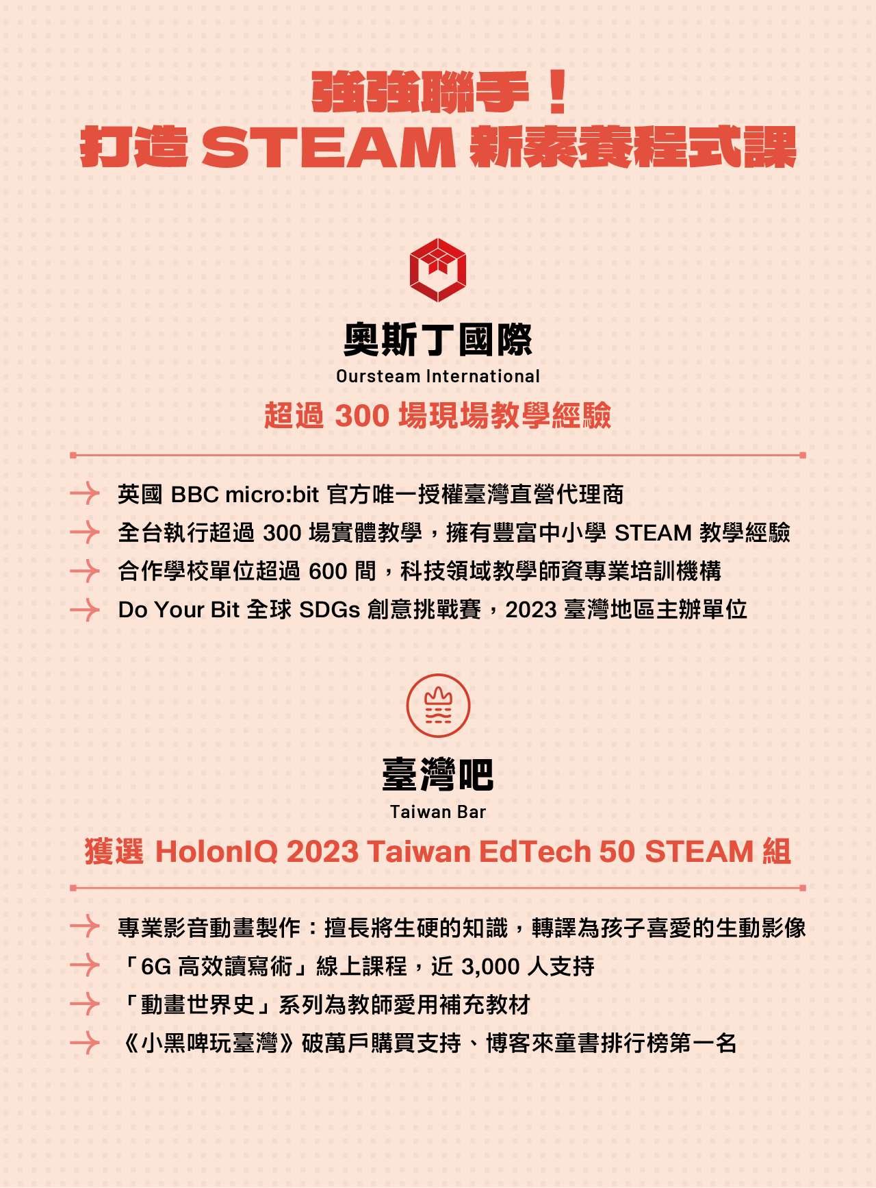 臺灣吧 X 奧斯丁國際 聯手打造,這是一堂喚醒學生主動性的複合式課程,透過 micro:bit 讓孩子邊玩邊學,透過動手做累積成就感,培養跨領域的系統性人才!