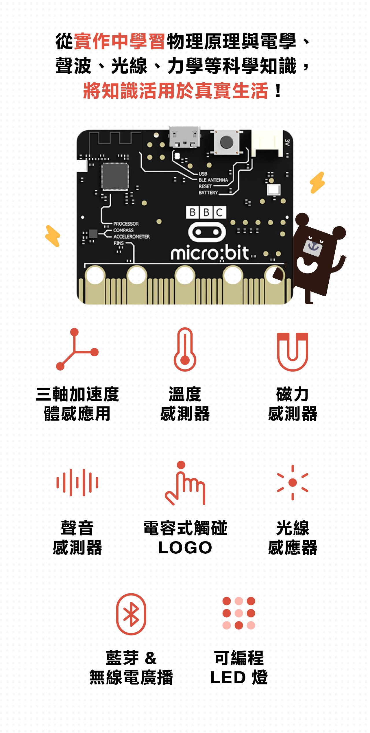 micro:bit 通過軟體製作和硬體操作能力的相互搭配,為孩子們提供更全方位的程式學習體驗!