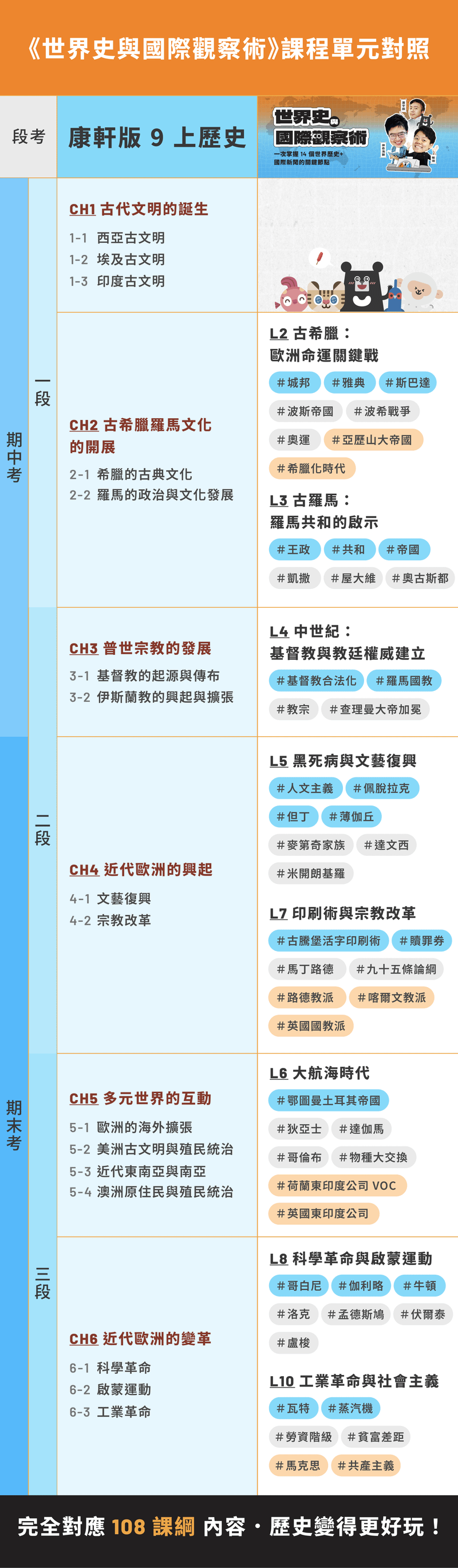 - 能理解世界史的發展趨勢,以及「關鍵事件」帶來的連帶影響