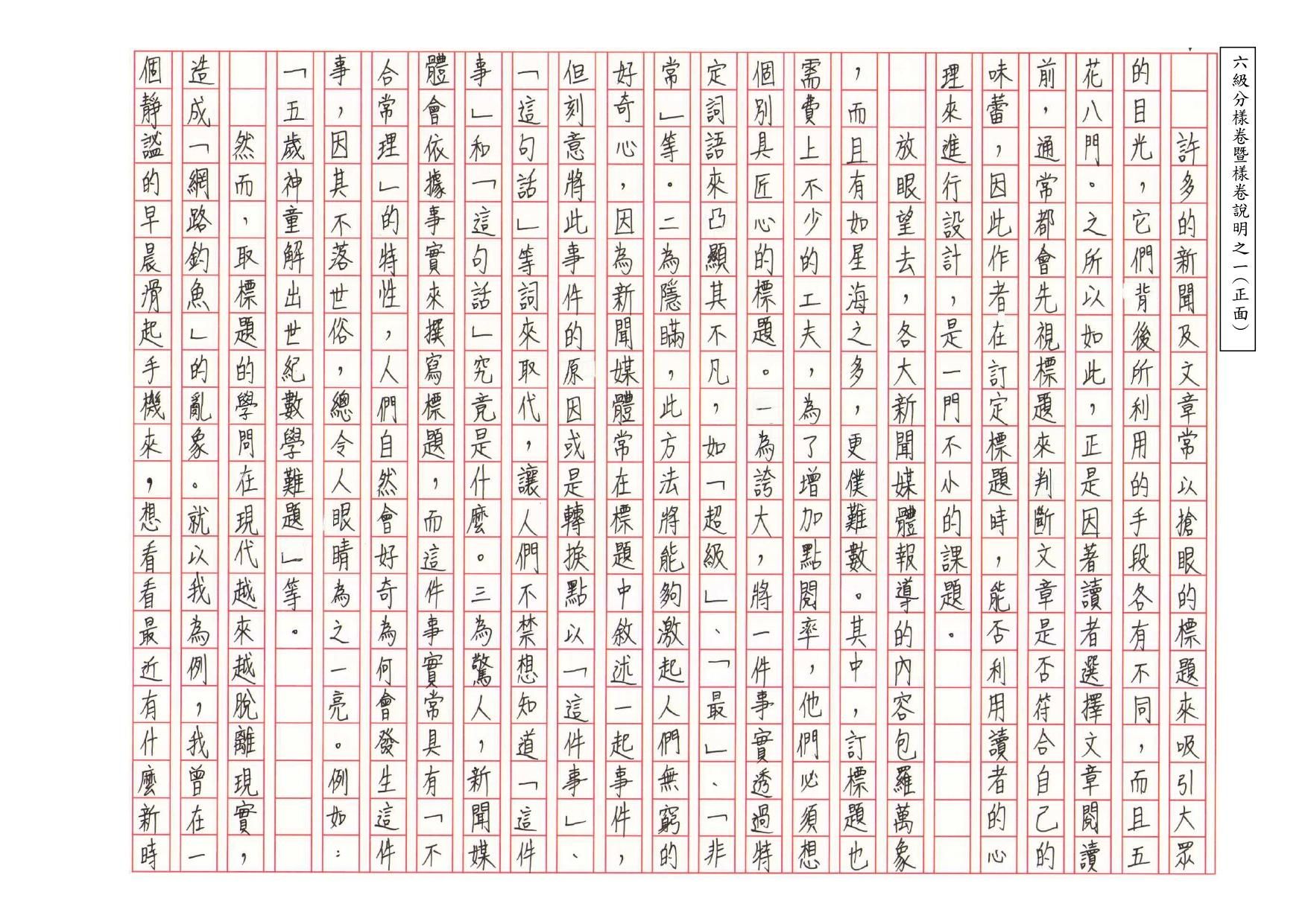- 作答不得超出格線外框,以免掃描時文字遭裁切、影響閱卷。